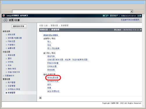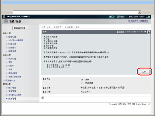 要备份/恢复已存储数据,必须以管理员身份登录。