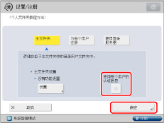 符合以下条件时,可以在不指定每个用户的认证信息的情况下使用个人文件夹。在这种情况下,取消选择[使用每个用户的认证信息]。