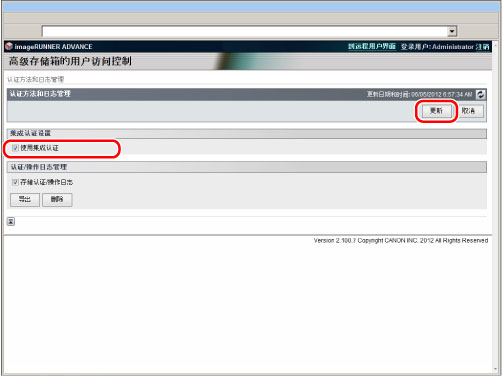 如果访问本机的登录名称和密码与在[高级存储箱的用户访问控制]中注册的登录名称和密码相同