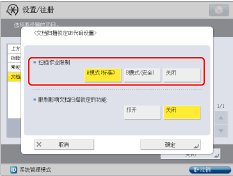如果选择[B模式(安全)],将拒收包含带有[允许全部]设置的QR代码的原稿之外的全部文档。在这种情况下,无法复印手写笔记等文档。
