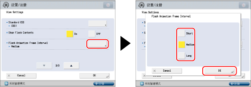 如果[Flash Animation Frame Interval](Flash动画帧间隔)设置为“Short”(短),则其他操作(例如打印)可能会变慢。