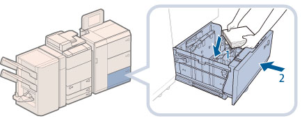 ![]() 请正确调整外侧尺寸更改板、内侧尺寸更改板和纸张夹持板,以免卡纸、弄脏打印件或弄脏本机内部。
