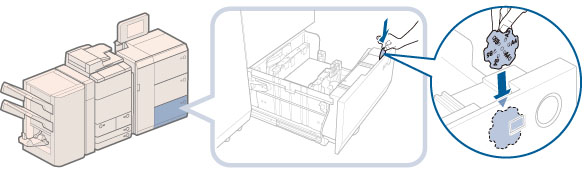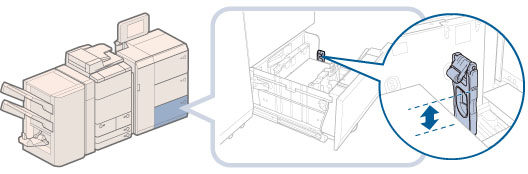 首次将纸张添加到纸仓中时,请调整尺寸更改板以符合正在添加的纸张尺寸。(请参阅“更改多纸盒纸柜-A1的纸张尺寸”)