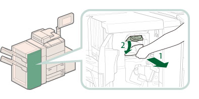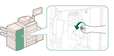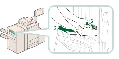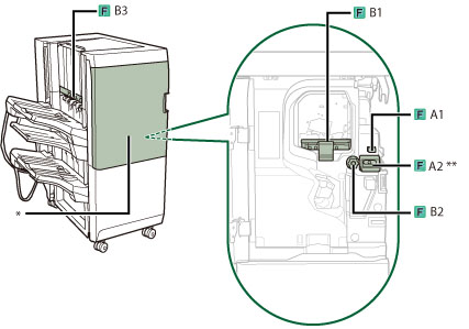 请小心操作本机安装的可选设备。打开可选组件的盖板更换装订针盒、清除打孔废屑、清除裁边废屑、清除废装订针或清除卡纸或卡针时,如果其他可选组件正常运行并且没有在清除卡纸或卡针操作中使用,则可能仍然会输出打印件。