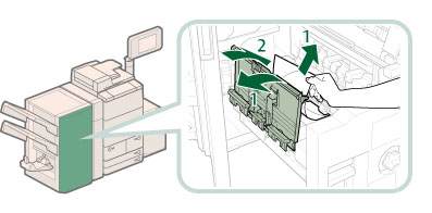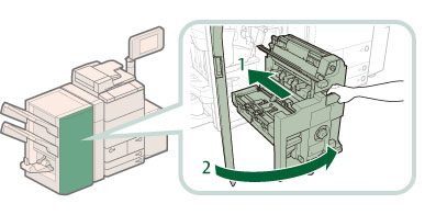 将鞍式装订处理器恢复原位或关闭盖板时,请小心不要夹住手指,否则可能导致人身伤害。