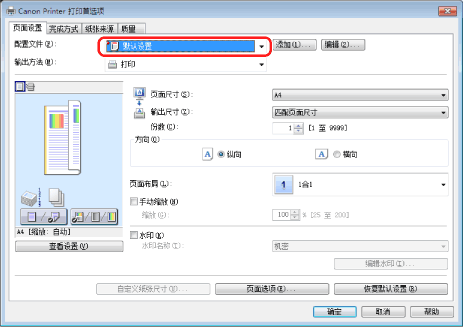 与各种打印目的相对应的打印机驱动程序设置的组合以“配置文件”的形式随打印机驱动程序提供。这样便可以按照希望的目的从[配置文件]列表中简单地选择配置文件来打印文档。