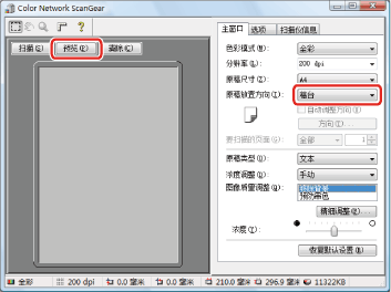 从稿台玻璃扫描时,可以在“预览区域”中显示扫描图像,然后选择原稿内要扫描的区域。