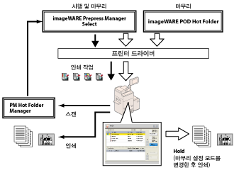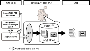 전송된 작업이 Hold 큐에 저장됩니다. Hold 큐의 작업은 이미 RIP(Raster Image Processor) 프로세스를 완료한 것으로 Hold 큐에 저장된 작업을 모두 인쇄할 수 있습니다.