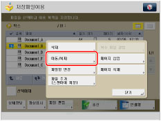 파일 선택 화면에서 [파일 편집]의 [복수 파일 결합] 또는 [페이지 삽입]으로 편집한 파일을 보류 대기열로 이동하거나 복제할 수 없습니다.