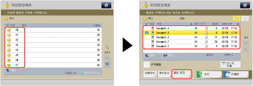 팩스/I-팩스 박스, 고급 박스, 네트워크의 다른 imageRUNNER ADVANCE 기기의 고급 박스 또는 메모리 미디어의 파일을 보류 대기열로 이동하거나 복제할 수 없습니다.