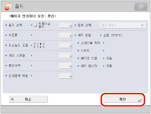 여러 페이지 범위를 선택하고 각 페이지 범위의 설정이 서로 다른 경우 [출력 용지크기]에 [혼재]가 표시되며 다른 설정에는 [페이지 범위마다] 또는 [페이지 범위마다 의 설정에 따름]이 표시됩니다.