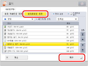 사용자 설정 용지 범주 아래에 있는 용지 종류만 표시합니다.