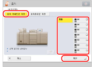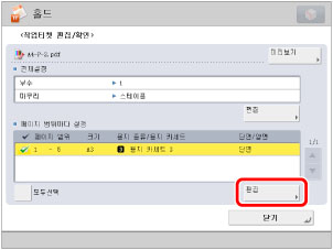 를 누른 경우, 선택된 용지의 자세한 정보를 표시합니다. |