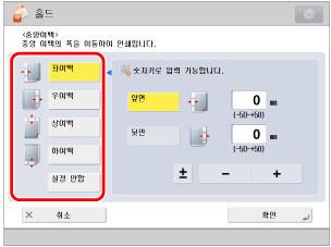 0 이외의 값을 입력하는 경우, [±]을 눌러 플러스 및 마이너스 여백 폭 사이를 전환할 수 있습니다.