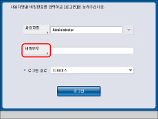SSO-H('Server Authentication + Local Device Authentication' 사용자 인증 시스템 포함)의 Server Authentication 사용자 인증 시스템을 사용하는 경우, 드롭다운 리스트에서 로그인할 곳을 선택하십시오. 로그인할 곳 선택에 대한 자세한 내용은 "SSO-H (Single Sign-On H)."를 참고하십시오.