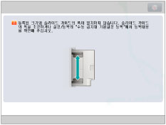 ![]() 슬라이드 가이드를 조정하거나 설정/등록에서 [수동 급지대 기본설정 등록]을 체크하라는 화면이 표시되면 수동 급지대 기본설정 등록에 저장된 용지 크기에 맞게 슬라이드 가이드의 폭을 조정하거나, [환경 설정](설정/등록)에서 [수동 급지대 기본설정 등록]을 '해제'로 설정하십시오. (See "수동 급지대 기본 설정 등록.")