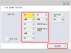인치 단위의 용지 크기를 선택하려면 [인치 크기]를 누르십시오.