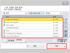 용지 종류 선택에서 상세 설정 목록에 표시되지 않는 용지 종류를 등록할 수 있습니다. 사용자 설정 용지 종류 등록에 대한 자세한 내용은 "사용자 설정 용지 종류 등록/편집."을 참고하십시오.