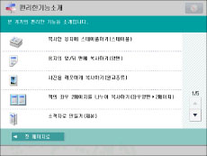 메인 메뉴 화면에서 [편리한 기능소개]를 누르면 이 기기에 대한 기능 소개 화면이 표시됩니다.
