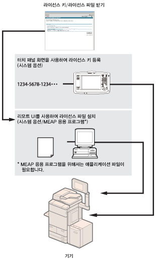 시스템 옵션/MEAP 응용 프로그램에 따라 라이선스 등록이 필요할 수 있습니다.