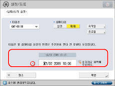 설정/등록 화면에서 날짜 및 시각을 네트워크에 있는 서버와 자동으로 동기화하도록 지정할 수도 있습니다. (See "TCP/IPv4 및 TCP/IPv6의 공통 설정.")