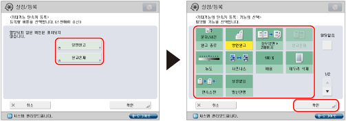 단축키를 누르고 → 등록할 설정을 선택하고 → [확인]을 누릅니다.