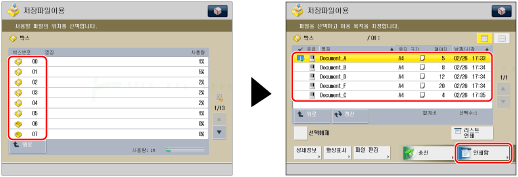 원하는 박스를 선택하고 → 원하는 파일을 선택한 다음 → [인쇄함]을 누릅니다.