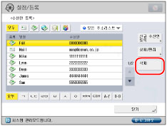 주소록 드롭다운 리스트에서 [모든 주소리스트]를 선택한 경우 원터치 버튼에 등록된 수신인도 표시됩니다. 하지만 원터치 버튼에 등록된 수신인은 삭제할 수 없습니다. 원터치 버튼 삭제에 대한 자세한 내용은