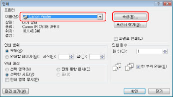 인쇄 화면은 사용 중인 응용 프로그램 종류에 따라 다를 수 있습니다.