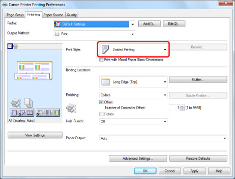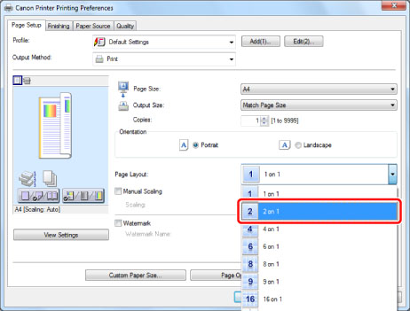 이제 양면에 2 on 1 인쇄가 기본 설정으로 지정되었습니다.