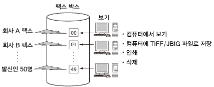 시스템 박스와 같이 팩스 박스는 팩스, 인터넷 팩스 또는 인트라넷 팩스를 통해 수신된 문서를 일시적으로 저장합니다.