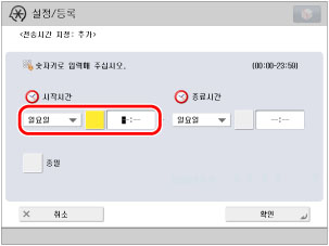 <시작시간>에 대해 [월요일]을 선택하고 → [
