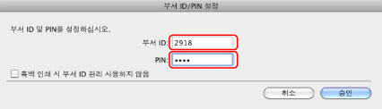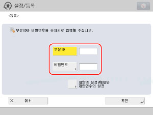"기기 설정"의 2단계에서 [설정]을 선택한 경우 부문 ID 관리가 설정됩니다.