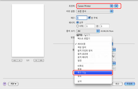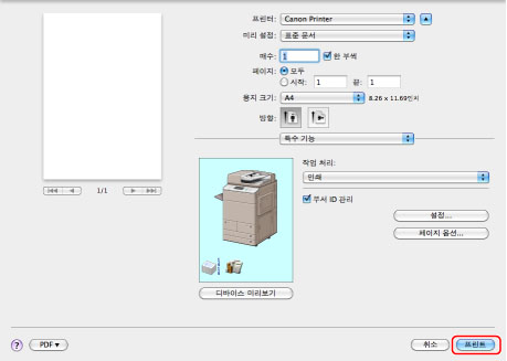화면은 사용하고 있는 프린터 드라이버 및 응용 프로그램 소프트웨어의 종류 및 버전에 따라 다를 수 있습니다.