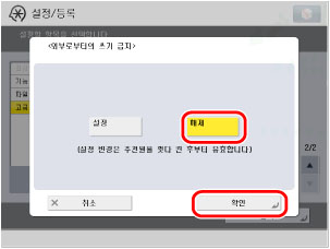 [해제]를 선택하고 → [확인]을 누릅니다.