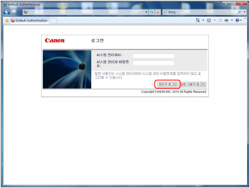 웹 브라우저에서 다음 URL을 입력하고 → [관리자 로그인]을 클릭합니다.
