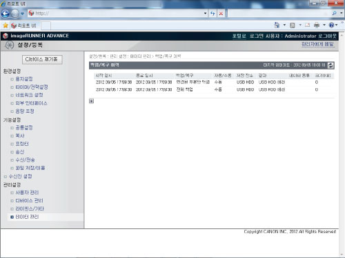 [백업/복구 이력]을 클릭하고 → 백업이 성공적으로 완료되었는지 확인합니다.