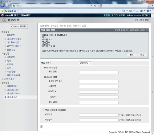 데이터 백업 저장소로 SMB 서버가 설정됩니다.