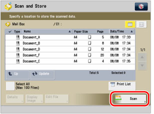원고를 피더 또는 원고대에 넣고 → [스캔함]을 누릅니다.