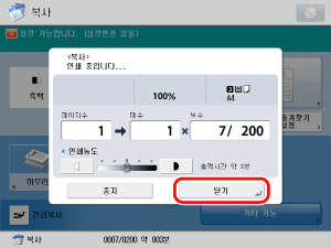 기기가 인쇄하는 동안 표시되는 팝업 화면에서 [닫기]를 누릅니다.