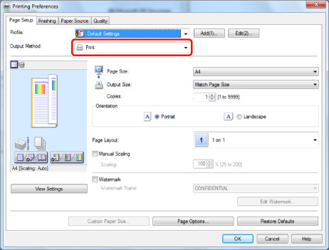 [출력 방법]에서 [인쇄]를 선택합니다.