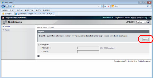 [내보내기]를 클릭하여 내보내기 페이지를 표시합니다.