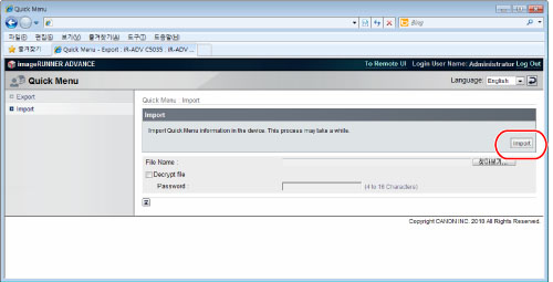 [가져오기]를 클릭하여 가져오기 페이지를 표시합니다.