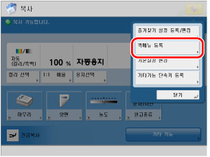 원고를 원고대 또는 피더에 놓고 → 메인 메뉴 화면의 [복사]를 누릅니다.
