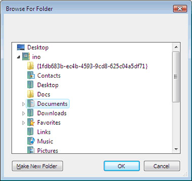 [Browse For Folder] 대화 상자에서 폴더를 선택하는 대신, [Register Library] 대화 상자의 [Storage Location]에 폴더 경로를 직접 지정할 수도 있습니다.