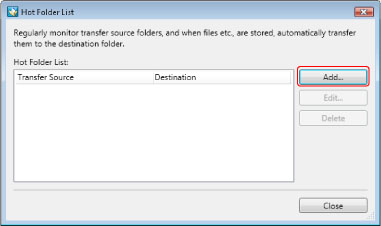 [Hot Folder List] 대화 상자가 나타납니다.