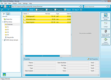 라이브러리와 라이브러리의 폴더를 선택하여 단일 바인더 문서로 편집할 문서를 File List View Pane에 표시합니다.
