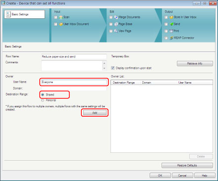 iW Function Flow와 함께 설치된 기기만 등록합니다.