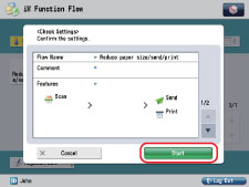 플로우 설정을 확인하고 → [시작]을 누릅니다.