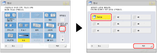 복사 기본 기능 화면에서 확인 화면을 표시하지 않고 설정을 불러올 수 있습니다.